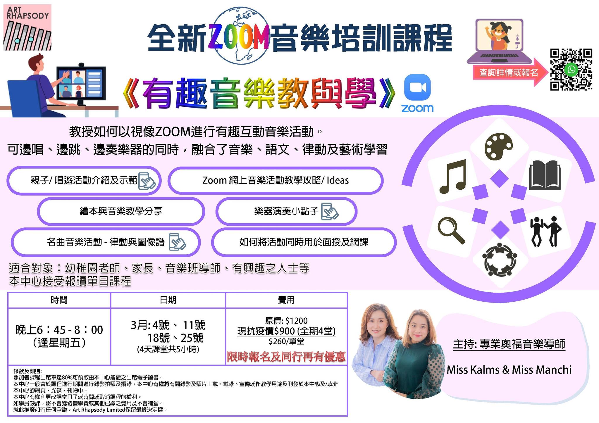 全新ZOOM音樂培訓課程 — 《有趣音樂教與學》 全新ZOOM音樂培訓課程 — 《有趣音樂教與學》 日期:3月4, 11, 18, 25日 時間:6:45 - 8:00pm (逢星期五) 形式:Zo...