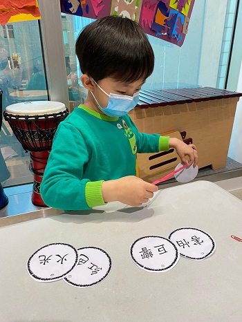 結合奧福音樂教學法:奧福音樂本身著重語言節奏、詩歌、學習本地童謠,多種元素同時學習,相得益彰。